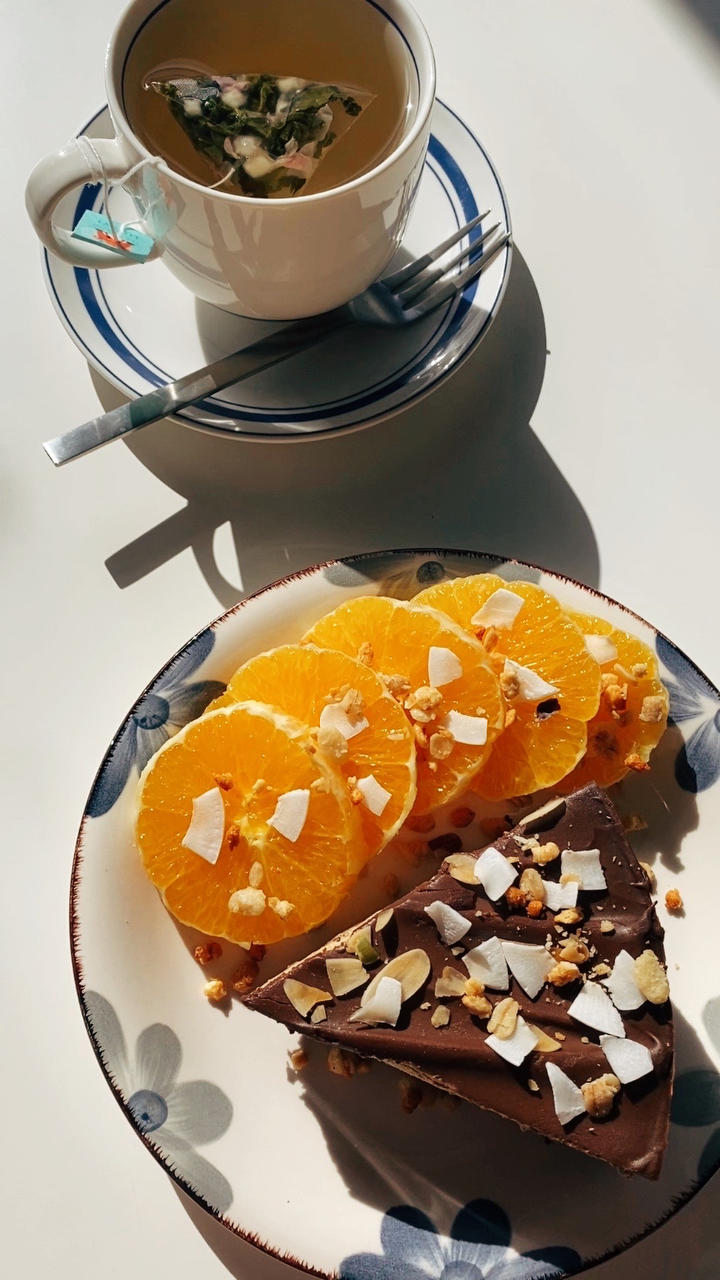 核桃布朗尼蛋糕配白桃乌龙茶