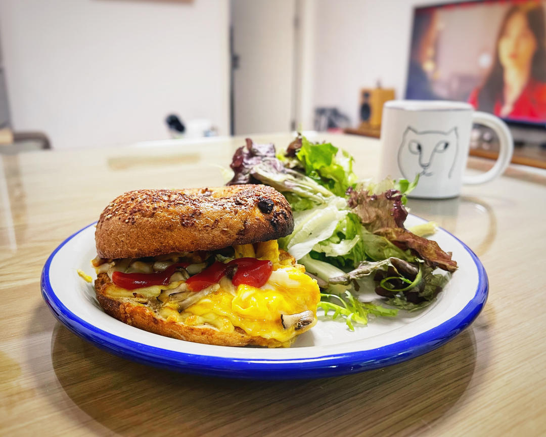 蘑菇炒蛋+芝士烤贝果