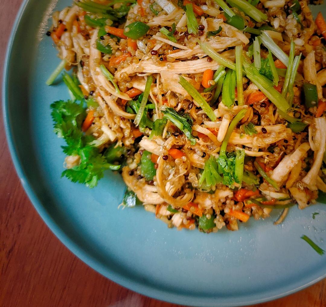 中餐:手撕鸡肉丝抄藜麦饭