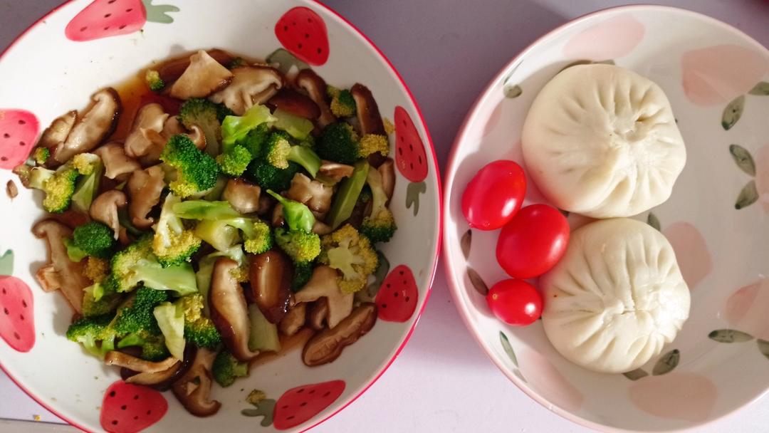 凉拌香菇西蓝花🥦,小西红柿,包子