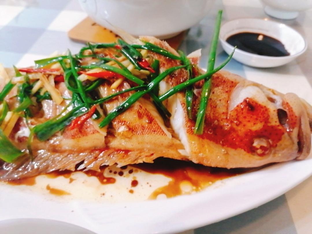 东星斑,比一般石斑鱼好吃多了,鱼肉好滑,红色的鱼身好喜庆。