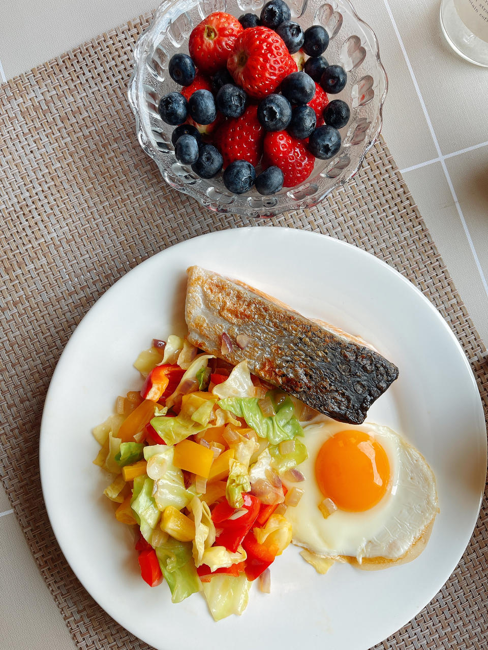 三文鱼卷心菜彩椒+太阳蛋