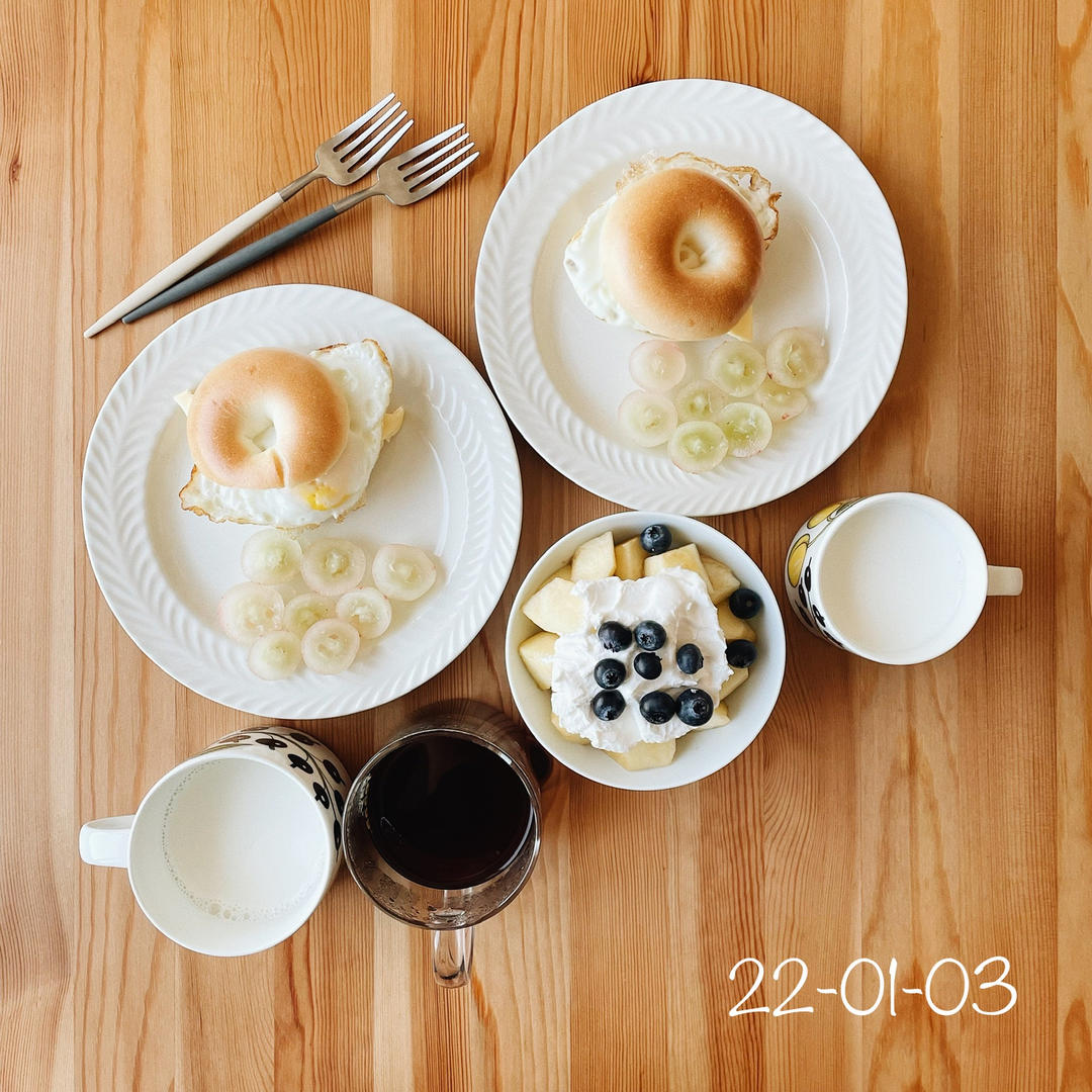 小号的贝果三明治,刚好一口咬得下。专门夸一下,今天的鸡蛋煎得格外到位,好吃!