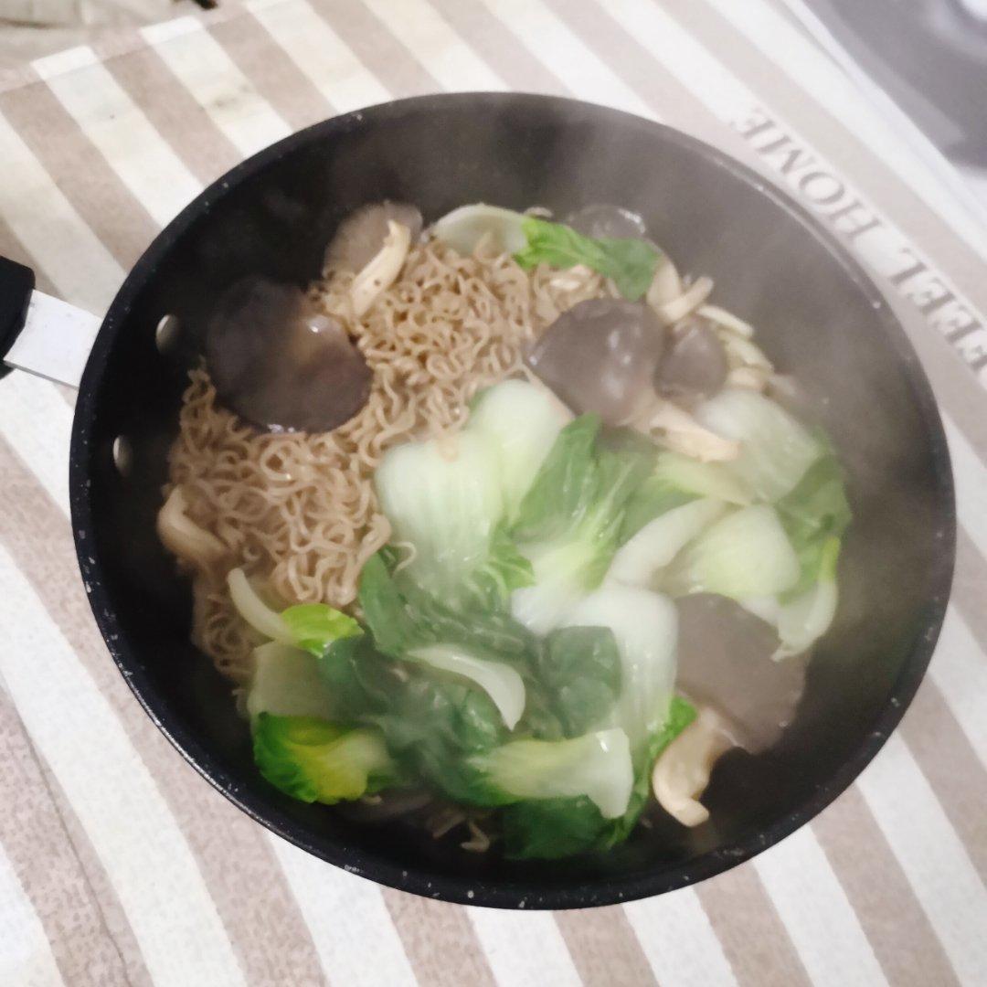 刚出锅的平菇白菜荞麦面,原来我也拍糊了🤪