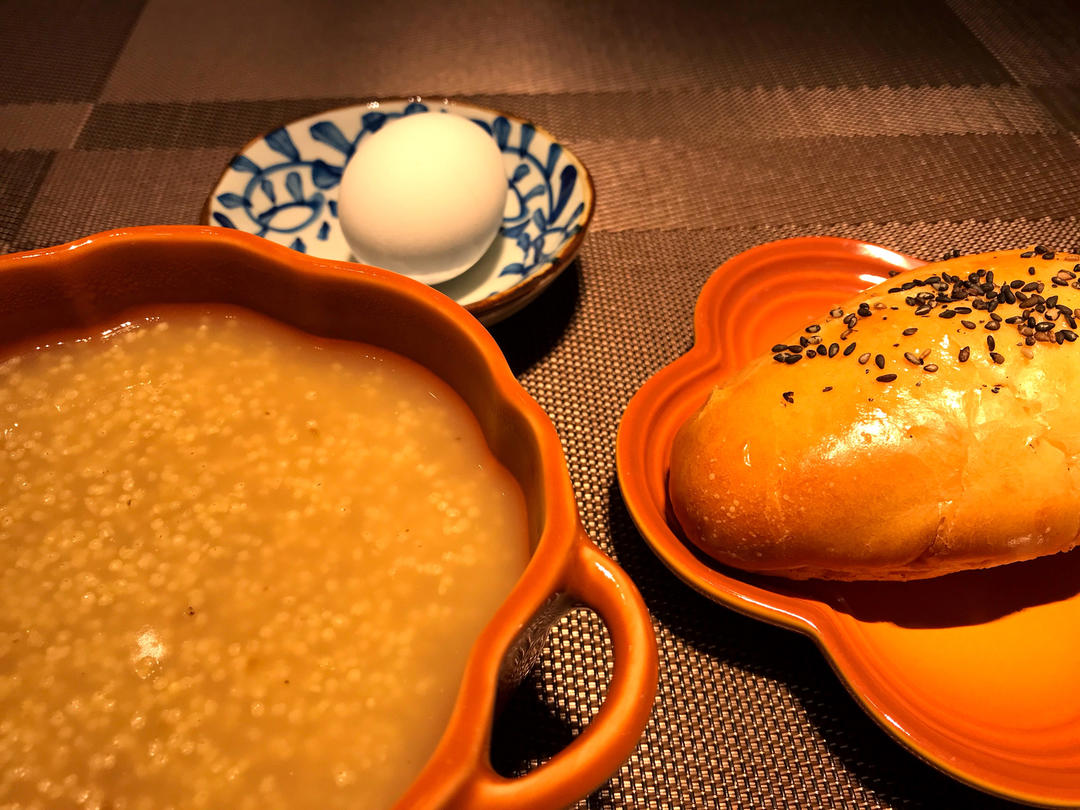 #早餐•2022年1月6早晨的闹铃响起,心里很想再眯一会儿賴床,可是一想到要做早餐要拍照片还要上传打卡,只能快速起早洗漱。烧锅小米粥加上姜母糖暖胃,肉松面包是几天前做的,煮个鸡蛋一份营养丰富的早餐呈现在眼前。生活需要仪式感,带着美好的心情开始新的一天