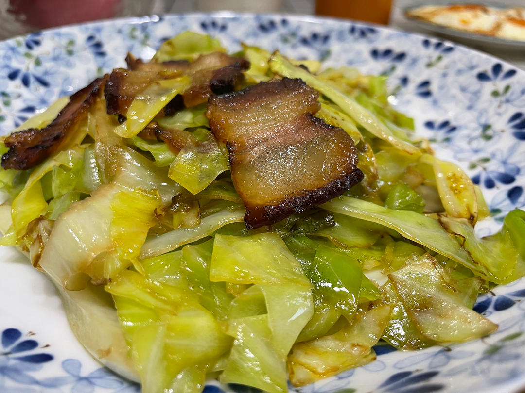 不加一点水的酱肉炒包心菜