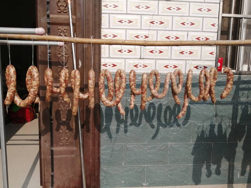 照着楼主的配方,用花椒粉、胡椒粉和五香粉代替了腌肠料,又加了些葱姜末,忙活完很累也很有成就感,希望味道也能很赞吧!