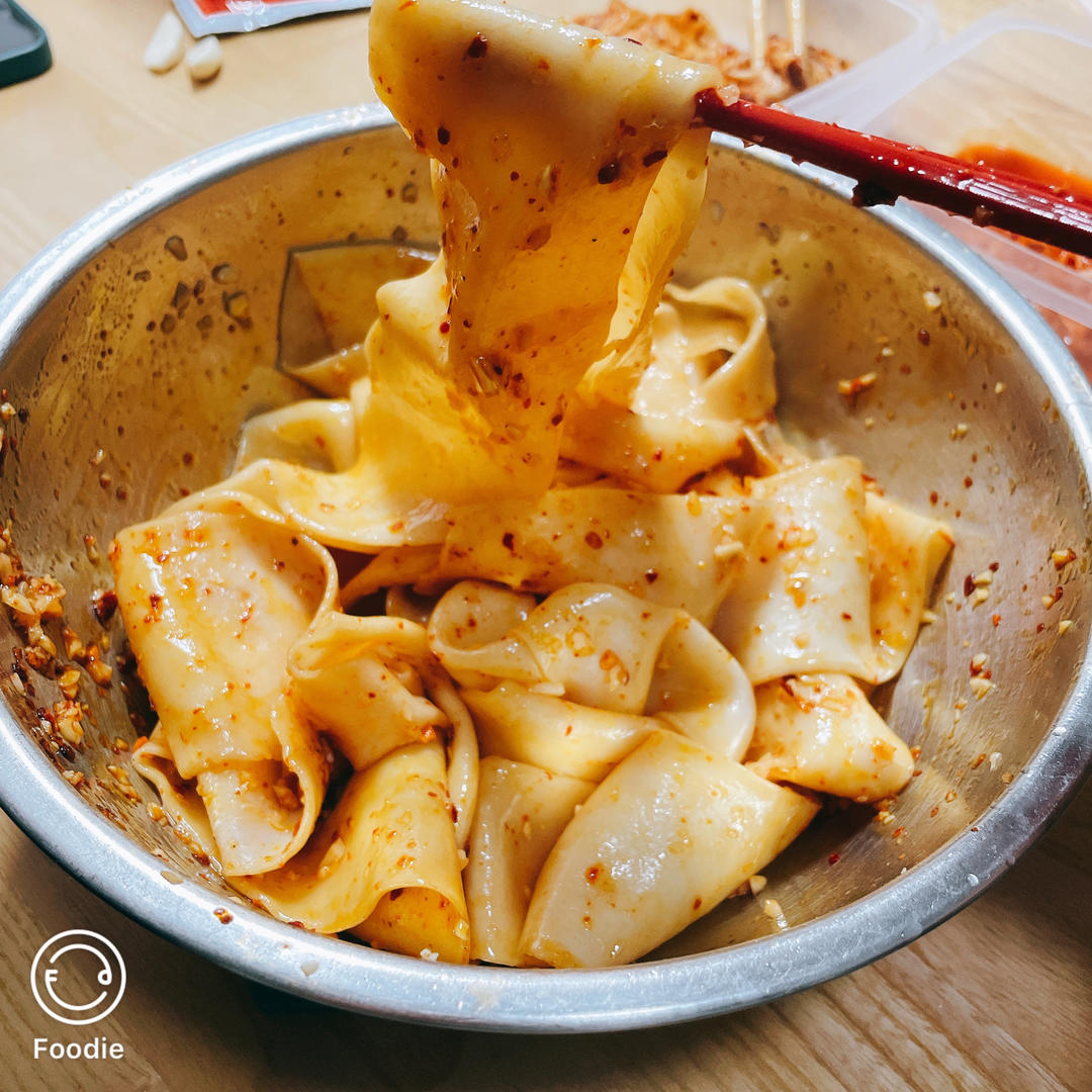 周六晚上自制的裤带油泼面