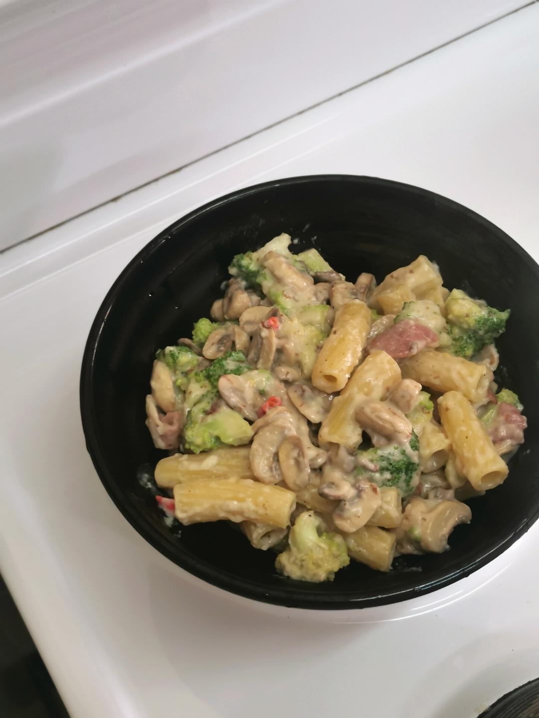姐的狗 做过 午餐•2022年1月18日 西兰花口蘑培根辣意面本来以为不用加白酱的,下次试试不加?好像没有那么爱吃口蘑了。白酱还是很浓郁很好吃的!很久没吃Maccheroni,好有嚼劲啊!!好好吃!果然要换着吃啊! #午餐•2022年1月18日# 2022-01-18