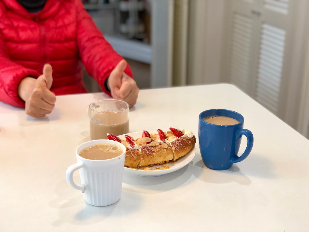 和敏敏的下午茶,土豆炖牛肉,菌菇鱼饼炒青菜,再补一个昨晚的手擀面~