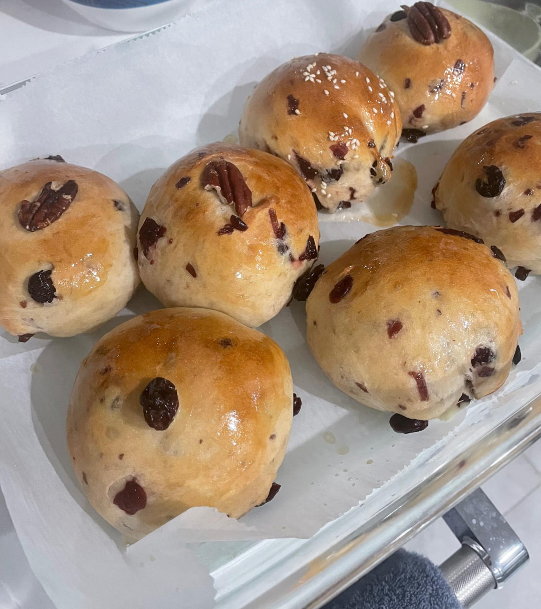 奶油馅蔓越莓面包,揉面的时候加了很多炼乳
