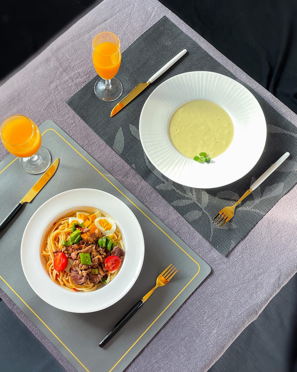 今日早餐,土豆泥,豪华意大利面,果汁,
