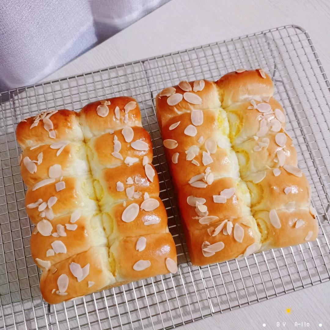 o二喵 做过 2022年01月26日 这个月做了八个椰蓉吐司,终于摸索到如何用250g模具代替了,省钱了😂。ps:250g吐司盒擀卷需要整成很窄的细长条,要不发酵的时候会拱起来不好看。发酵到模具8.5分开始烘烤。 2022-01-26