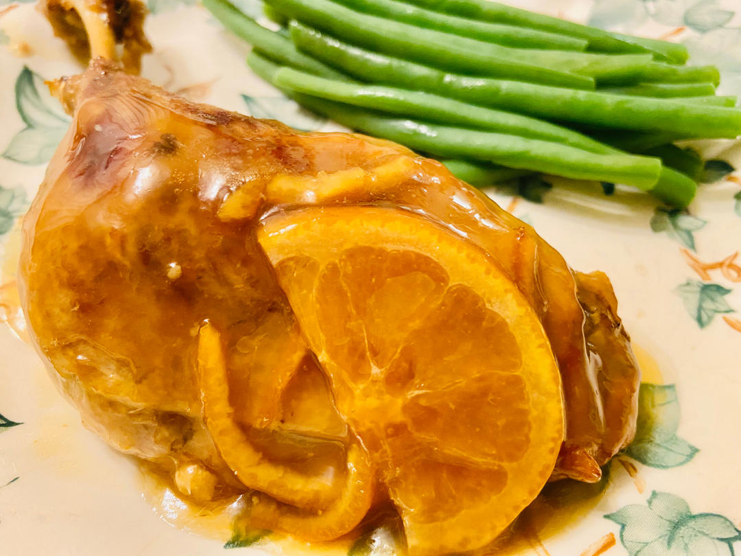 法式橘醬鴨腿。翻出存貨,給先生變個花樣。配菜依舊是土豆⋯⋯