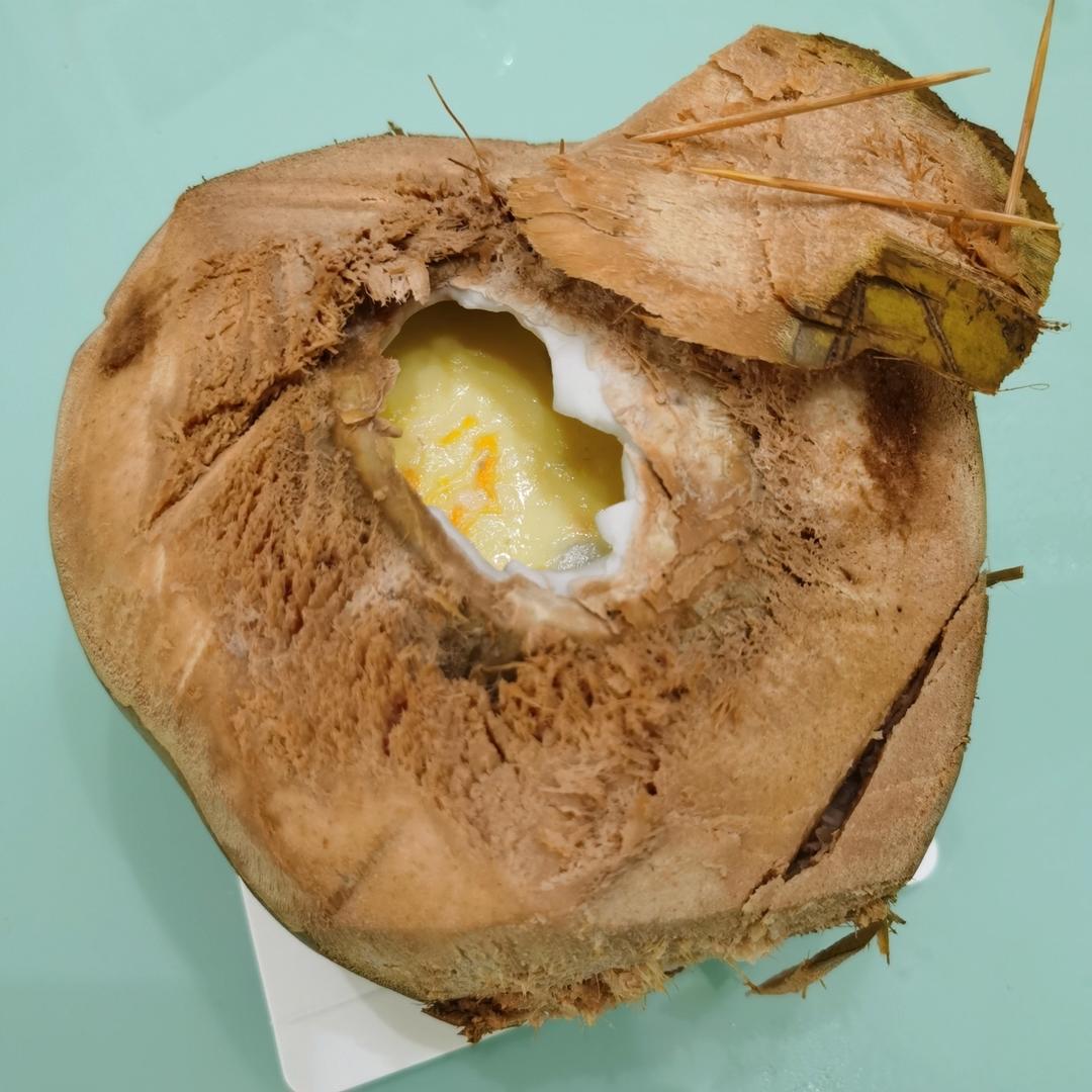 用的带皮椰青,四颗鸡蛋,120℃蒸箱蒸40分钟,成功做出,不过下层还是软塌塌的哈哈哈,椰子保温性能不错,谢谢分享