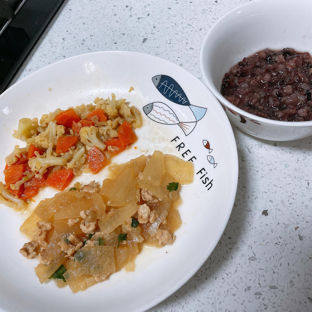 多多辅食:八宝粥,菜花炒胡萝卜,肉末冬瓜