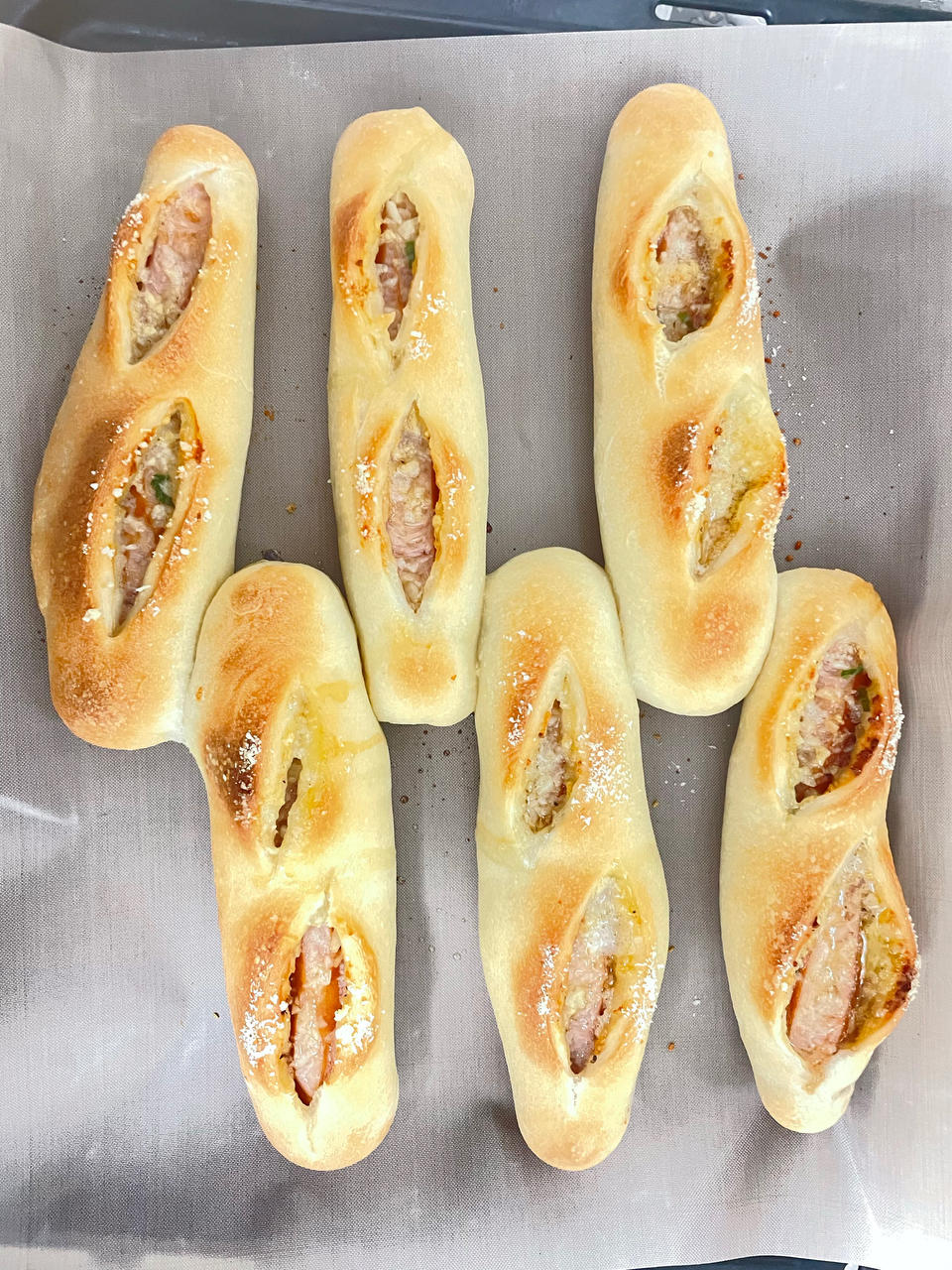 厨房的冥想 做过 爆汁德式香肠面包|大口吃肉肉|发酵时间短|快手好吃|无需手套膜|可做无油无糖 #晚餐•2022年2月13日# 中种,提前24小时低分50高粉:减少了20g水减少了10g面粉:新良欧式面包粉 2022-02-13