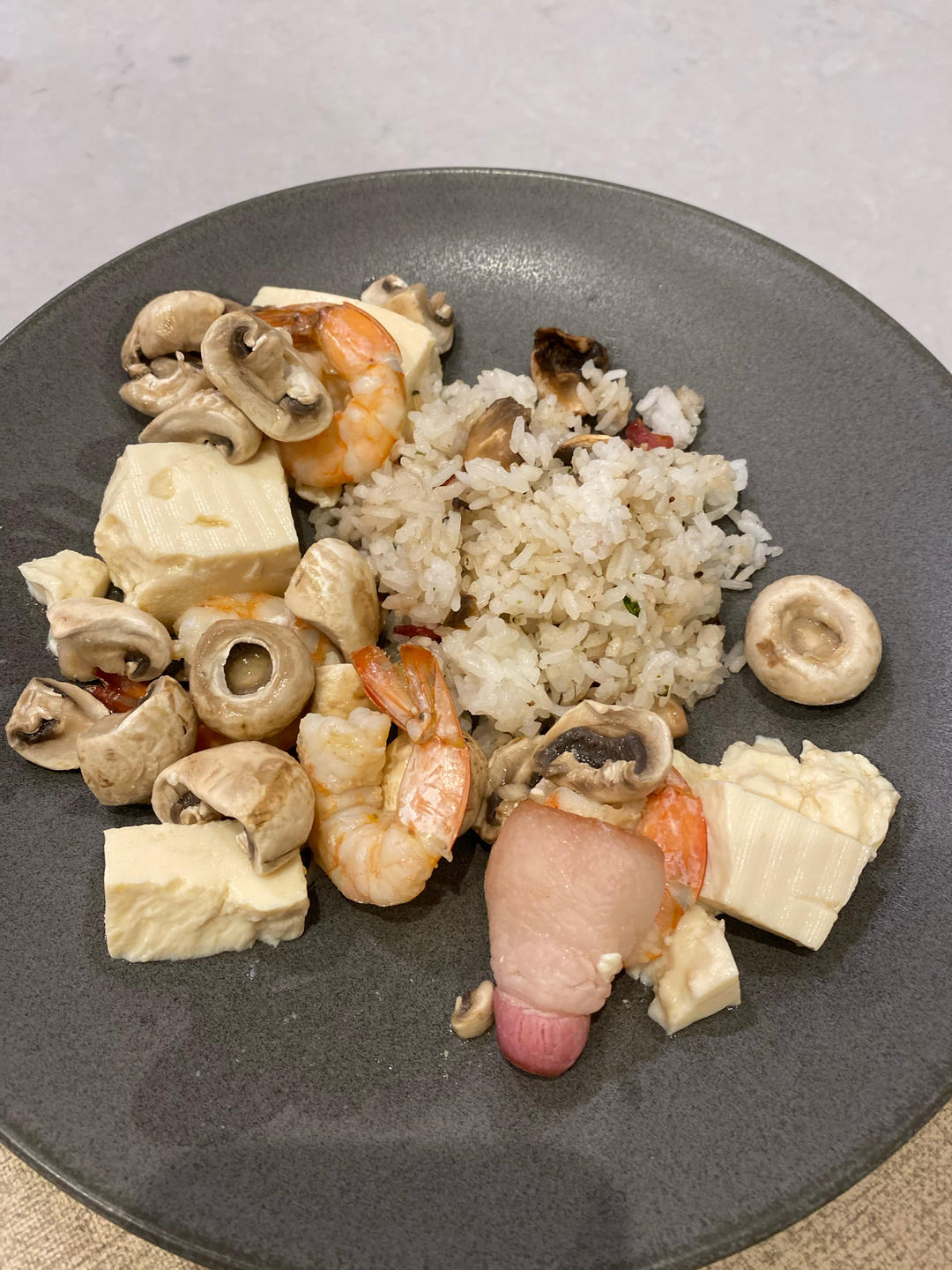 培根蘑菇丁炒饭+味增鲜虾豆腐蘑菇锅