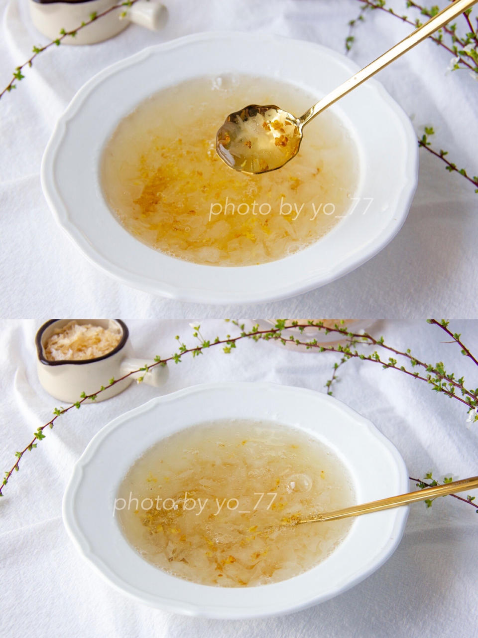 早上甜品,热乎乎的桂花蜜银耳羹!