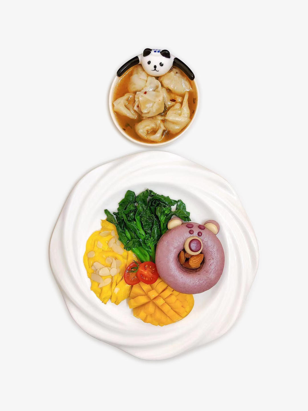 ✔️草莓熊紫薯甜甜圈馒头 巴旦木仁