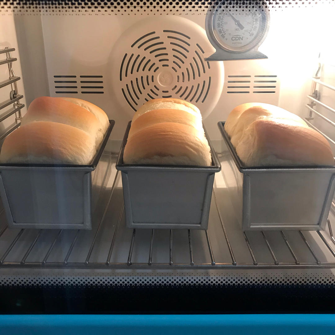 陈太懒 做过 最好吃的牛奶吐司妃娟的100%中种北海道牛奶吐司奶油吐司 450g的粉3个250g吐司,上火160,下火210,后面10分钟转上火150,28分钟,中间的火力太猛还是吐司盒太能上色?总觉得之前做的好吃,这次甜腻感一直停留在舌头上。 2022-03-21