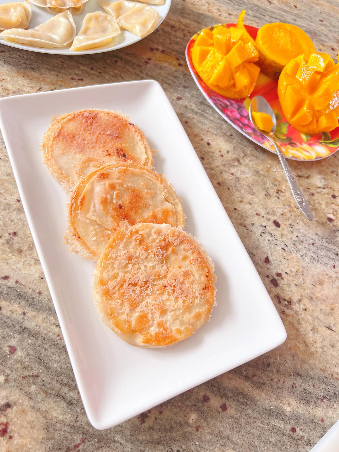 做了香蕉煎饺和油酥煎饼两款作早餐