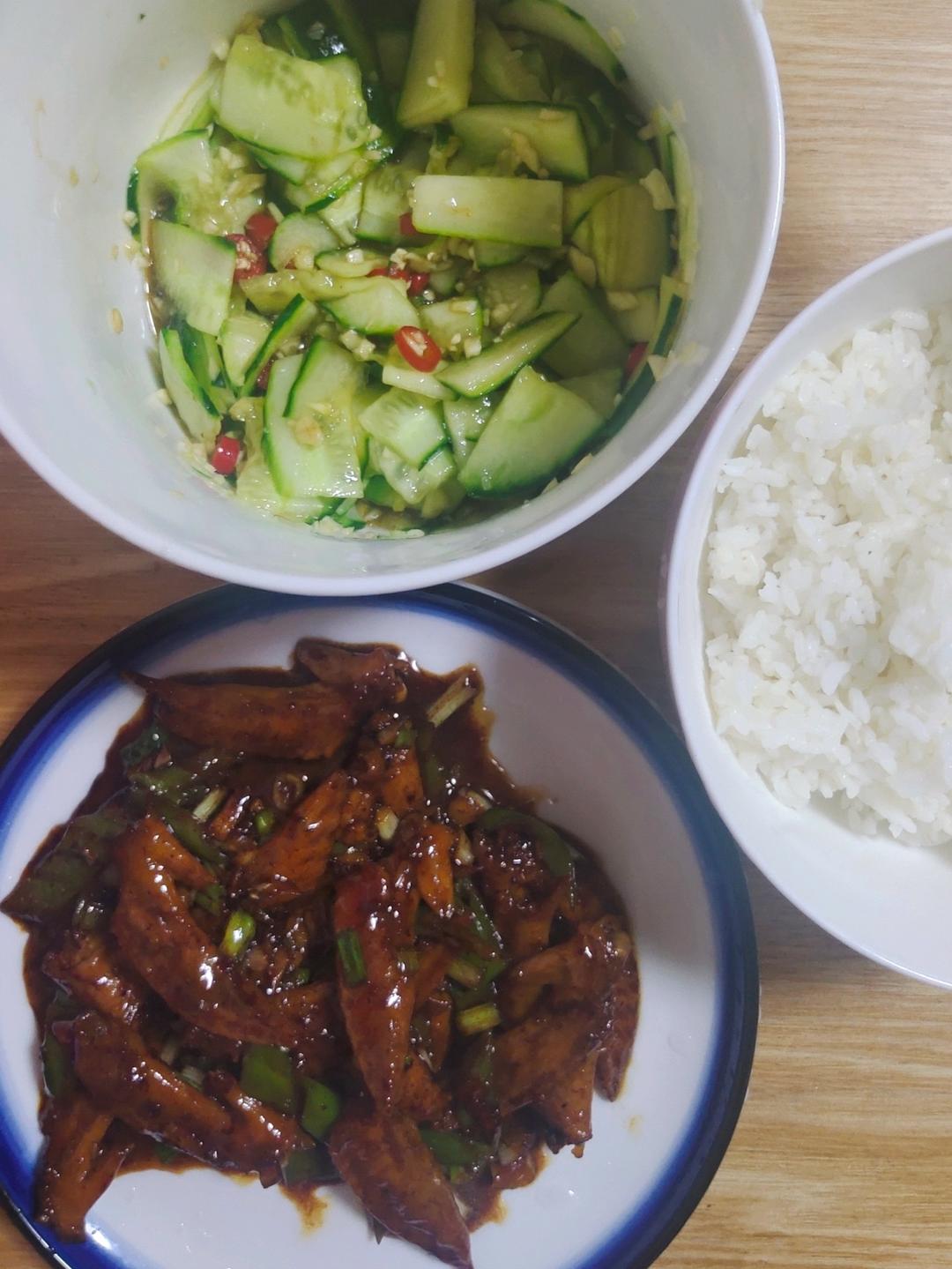 2.凉拌黄瓜好辣啊,小米辣的辣,真的让人吐口水......下回记住了,少放点。(俺还不会拍黄瓜......我太笨了🌚)