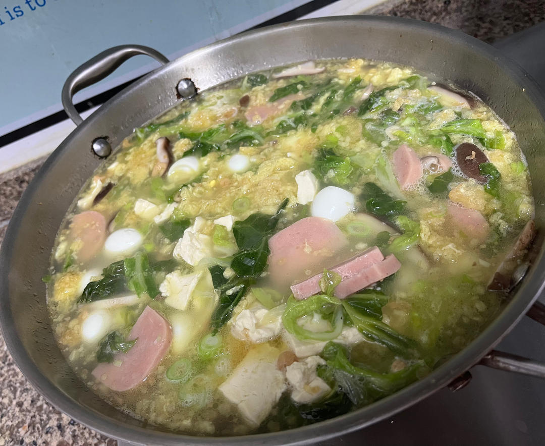 炸蛋松是关键,味道鲜香清淡,没买到青蒜苗,最后放的小葱。
