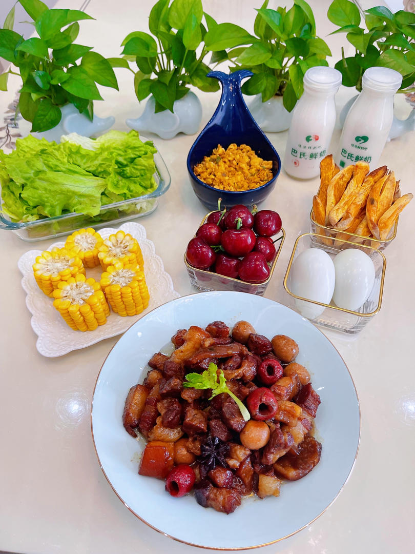 ---彤儿 做过 早餐•2022年3月29日 婆婆给拿的肉青椒🫑和生菜🥬妈妈给拿的樱桃和鹅蛋鸡蛋🥚大姨家的地瓜🍠调料都是超市免费自取[偷笑]我俩自己做饭真是太省钱了哈哈哈[憨笑]#早餐•2022年3月29日# 2022-03-29