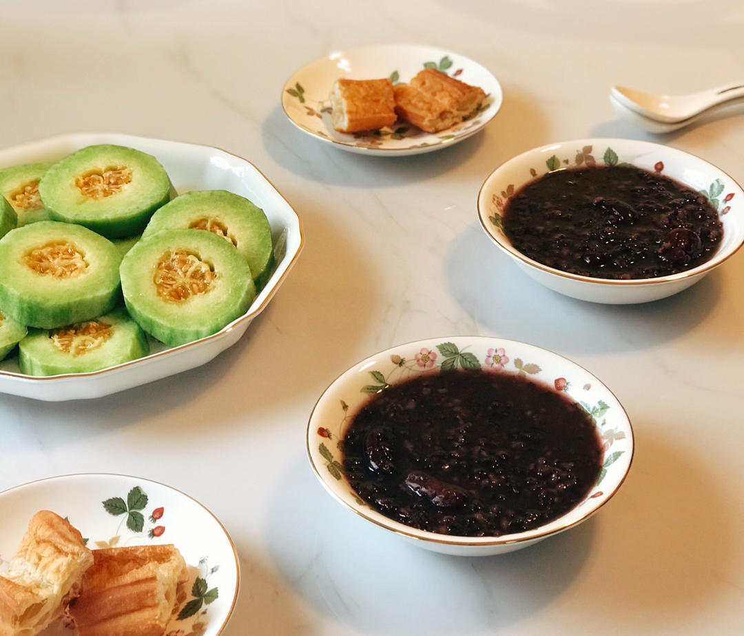 血糯米粥、油条、羊角蜜