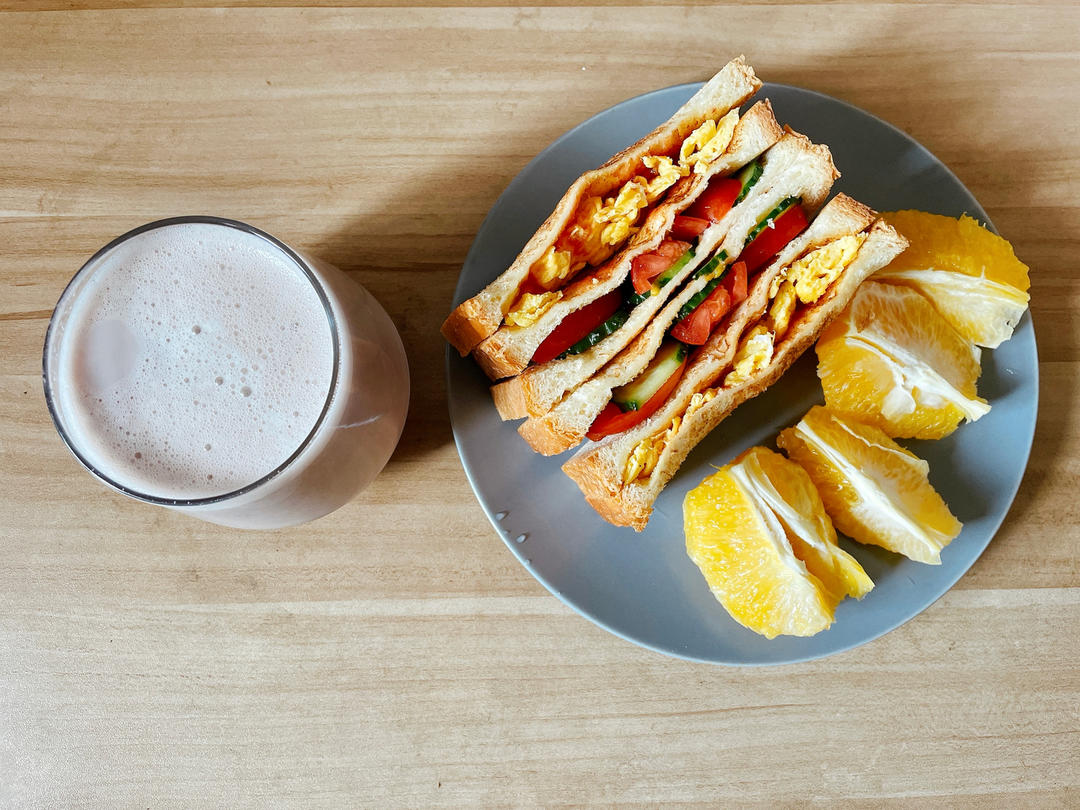 三明治+橙子+红豆沙鲜奶