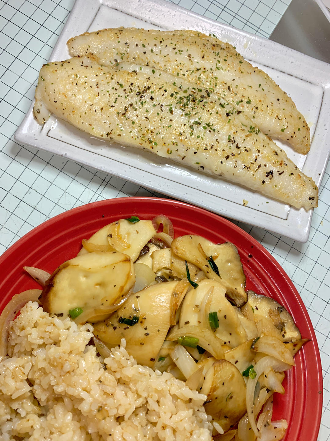 黄油罗勒煎鱼➕洋葱杏鲍菇
