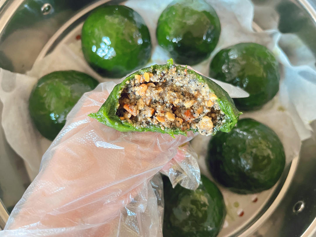 是紫霞仙子呀-- 做过 清明必吃的艾草青团 我爱吃艾叶,做了重艾叶青团,用了三四百克艾泥,用椰子油橄榄油代替了猪油,粘米粉代替澄粉,一样巨好吃,花生芝麻馅好香!做了大个的青团16个,糯米粉350,粘米粉150,热水看着加,馅料共计343克左右,糖共计137克。 2022-04-06