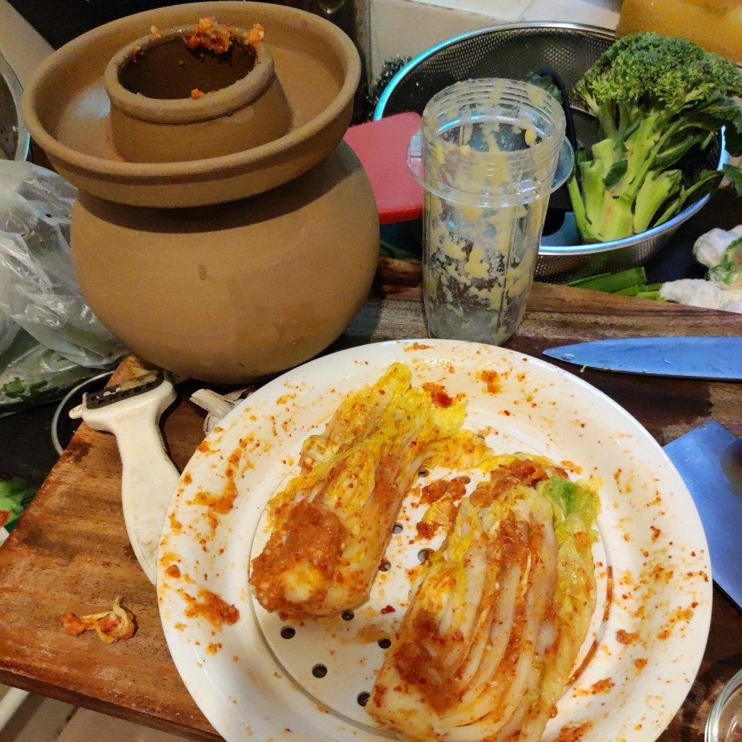 小羊羊Sarah 做过 【曼食慢语】韩式辣白菜 战场混乱,其实韭菜是灵魂哪,可惜家里没有又不想特地为了做这个辣白菜买一堆,家里也没有韩式辣椒,直接用了辣的干辣椒,之前按着方子做过一次还不错,这次就随意多了。转移到坛子里味道很香,之前就是这么干的 2022-04-06