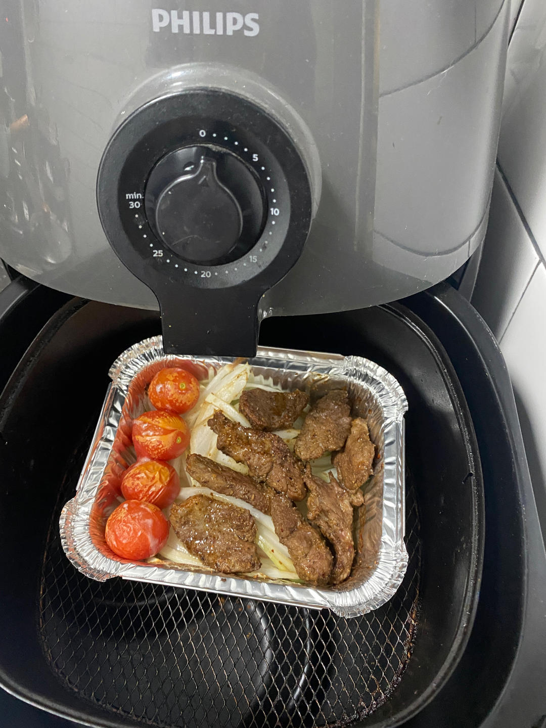 吃清淡點吧奎妮 做过 晚餐•2022年4月6日 十分鐘極速晚餐空氣炸鍋+蒸蛋器+水煮鍋同時運作10分鐘搞定了今晚的晚餐空氣炸鍋:山姆上腦牛肉(醬油孜然黑椒調味洋蔥絲小番茄200度10分鐘煮蛋器:之前煮好的小土豆,加熱一下水煮雞毛菜放點鹽/雞粉快速簡單又營養全面,太愛家裡這些小家電了#晚餐•2022年4月6日# 2022-04-06