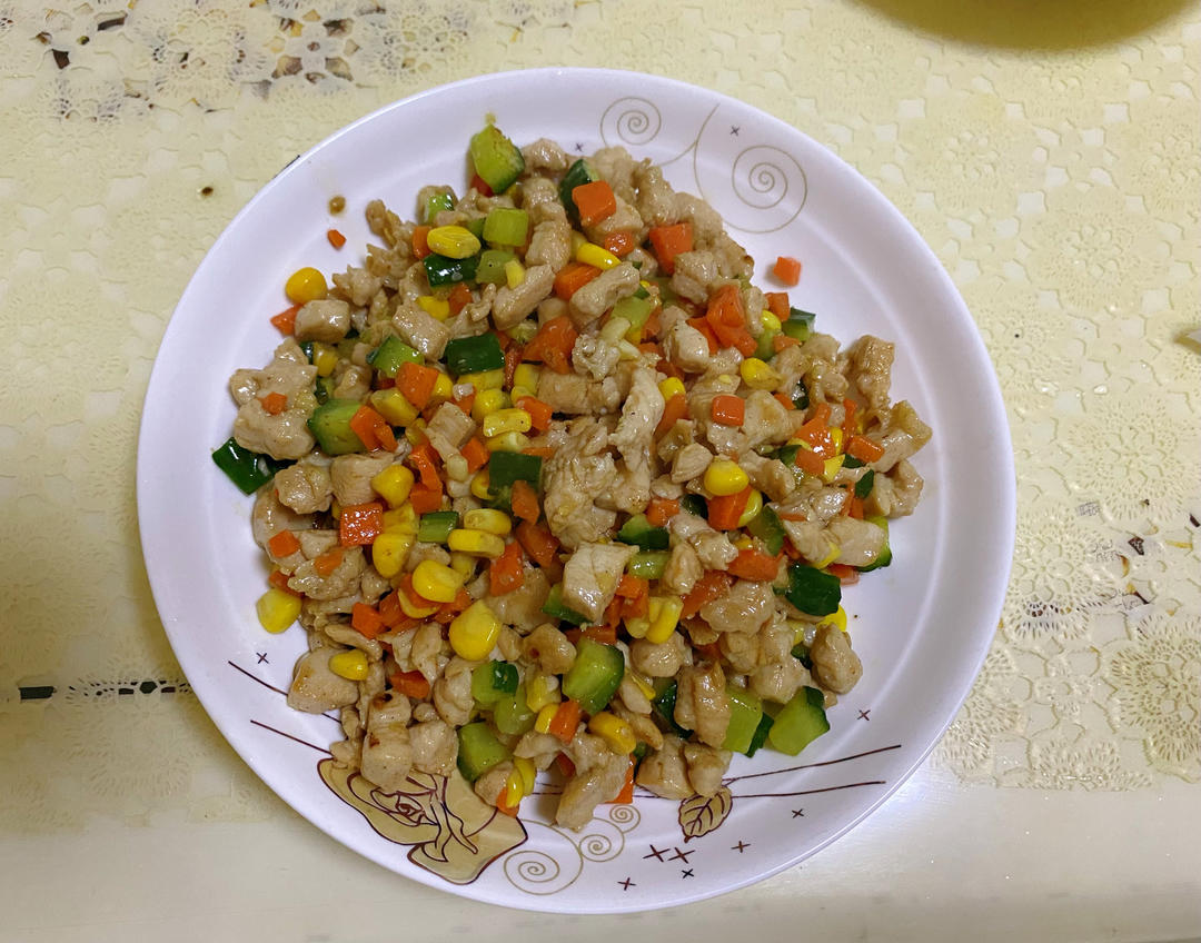 鸡胸肉炒三色蔬