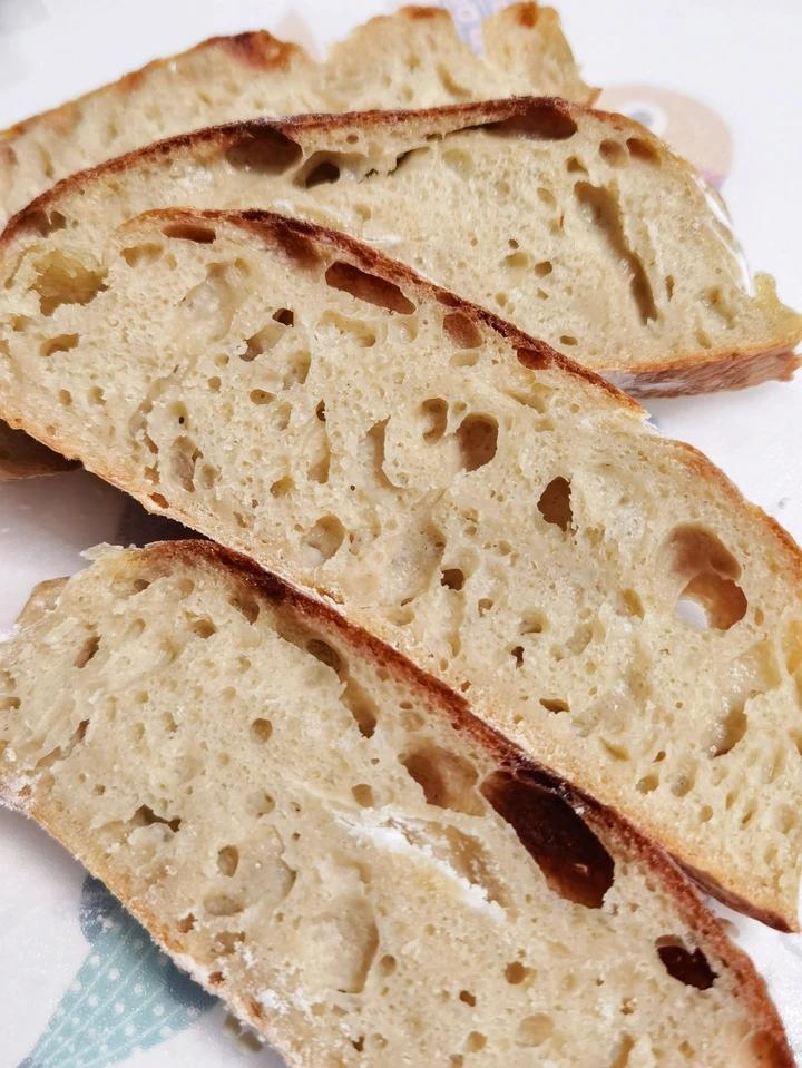 木小咖的小厨房 做过 绝密!8分钟,8块钱,吃8天的正宗欧包loaf来了! #早餐早餐# 200克高筋➕50克全麦粉。自我感觉成功,外形做的不好看,但是内里很满意了,这次孔很多,就是咸了一点。水多了不成型,折叠很费劲,下次少一点试试。 2022-04-07