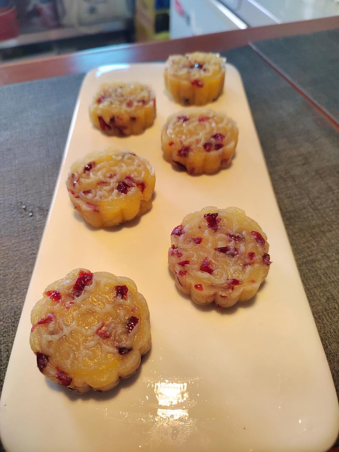 吃面包的二货 做过 蔓越莓绿豆糕 #晚餐•2022年4月9日# 下午绿豆汤剩下的绿豆,一粒一粒脱皮,一半的量做了6个蔓越莓绿豆糕,黄油有点多了,炒的微微干了一点点,放冰箱明天给宝子们下午茶 2022-04-09