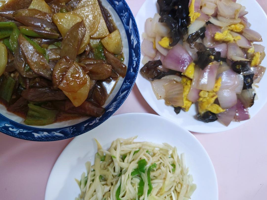 做毁的地三鲜和不爱吃的洋葱炒鸡蛋