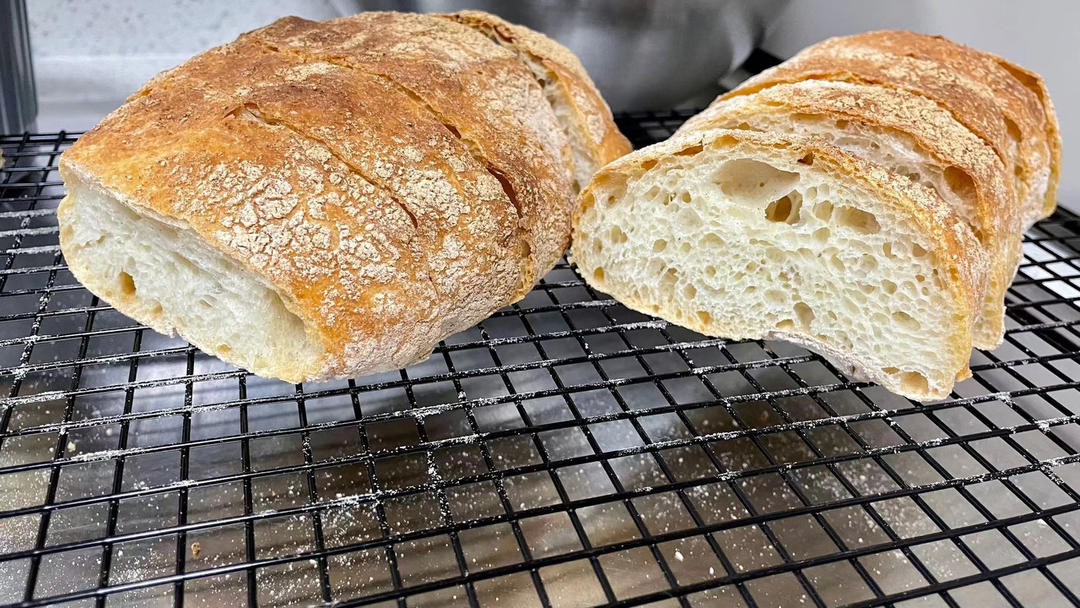 零机器免揉|徒手做出漂亮大气孔欧包|恰巴塔Ciabatta