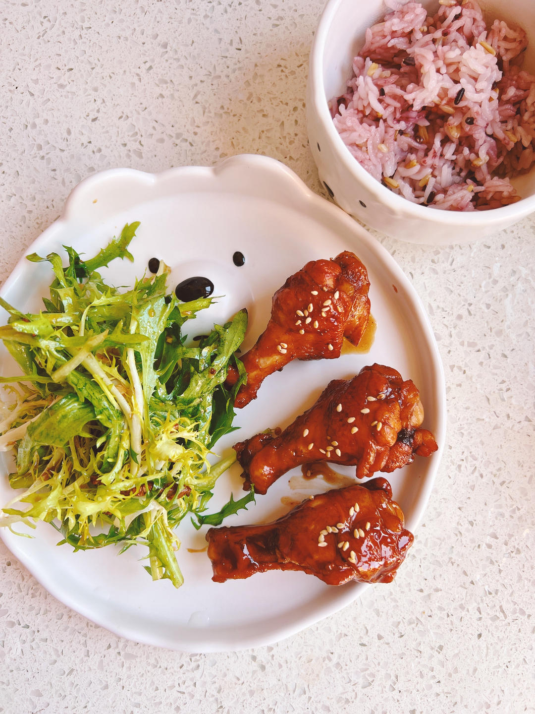 杂粮饭+肉丝苦苣+可乐翅根