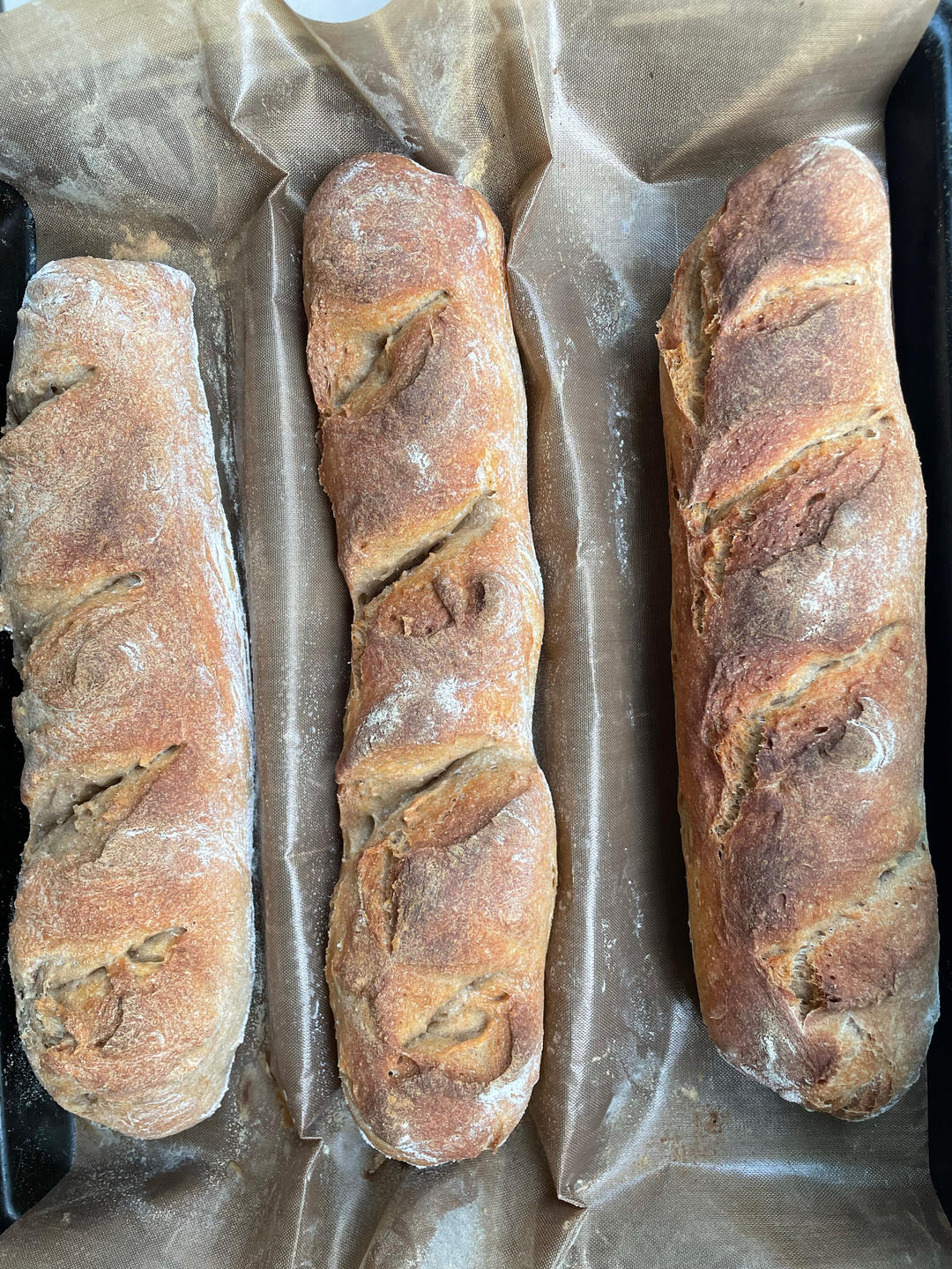 二刷,全麦面包粉➕200克中筋粉,晚上七点开始做,早上七点半进烤箱,气孔更大些的,外皮嘎嘣脆