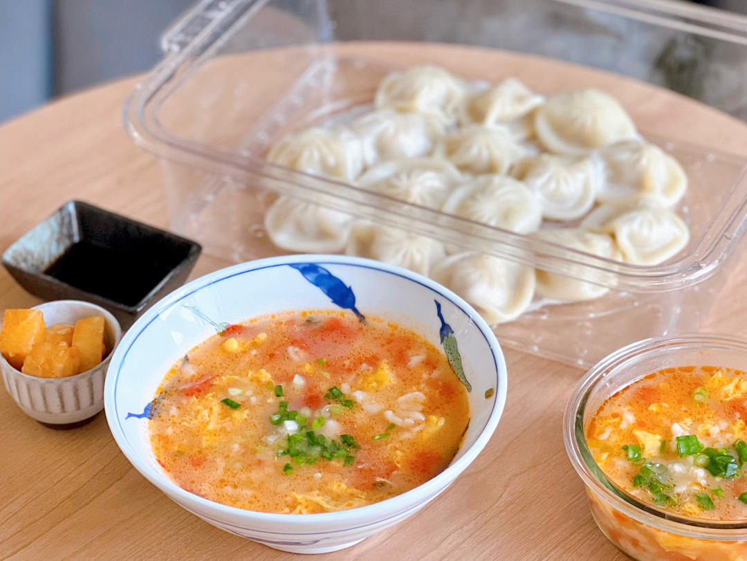 其他志愿者送了我们一包速冻小笼包,那就配个疙瘩汤吧~