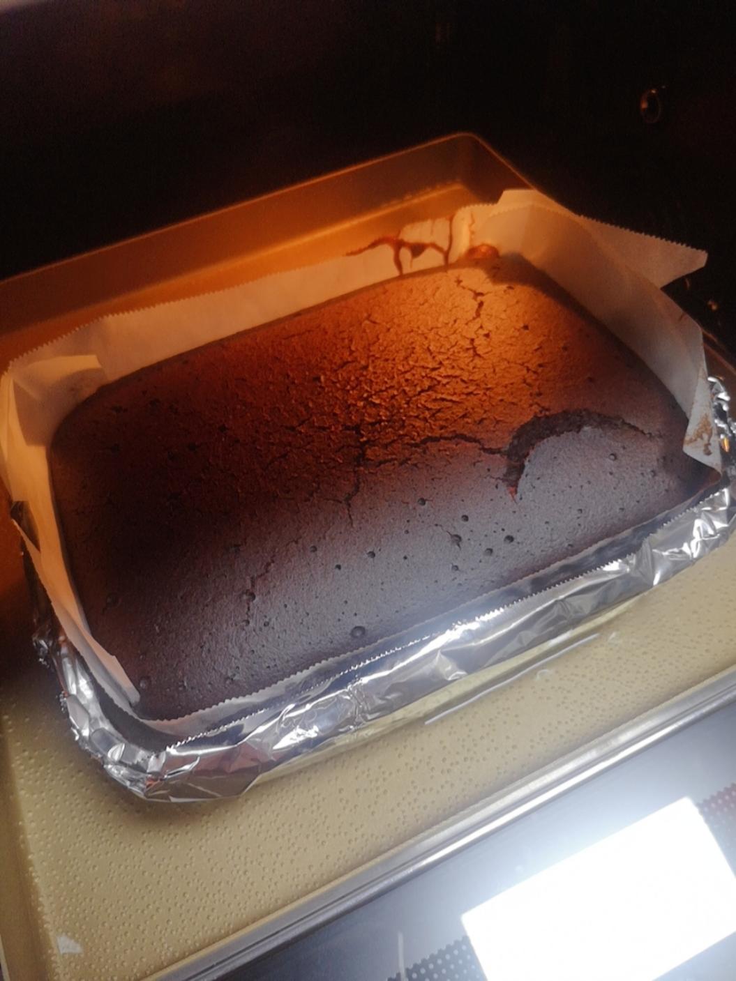 有点裂开了,好好吃,里面还是绵密微湿的口感,很满意,这次没用活底的模具。