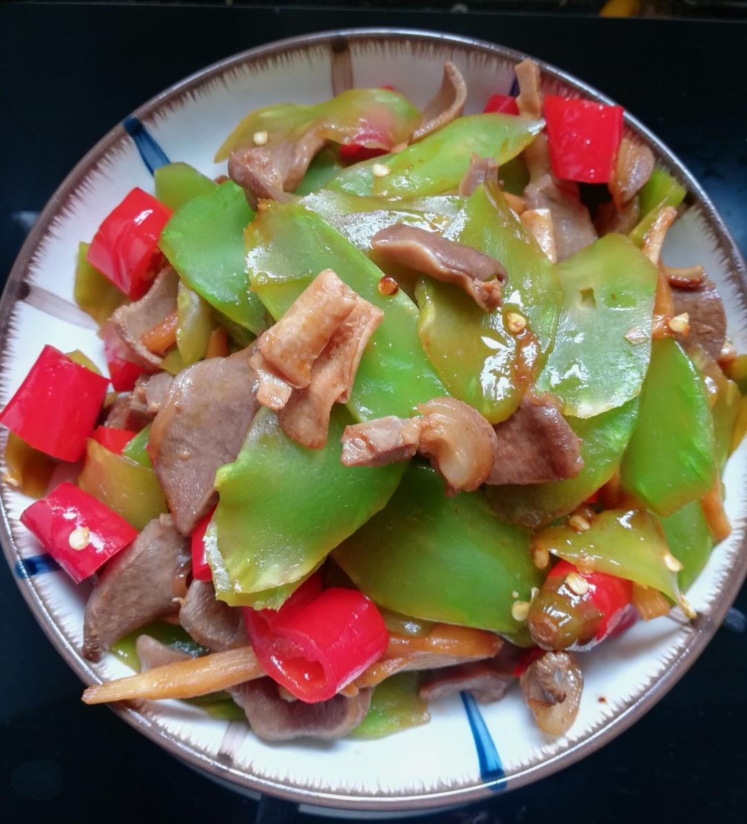酸笋泡椒莴笋炒鸭胗+葱姜蒜炒花甲+炒猪肝