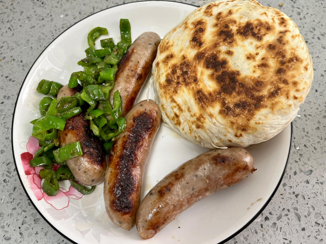 老潼关饼夹青椒,烤肠。2022.05.01晚餐。