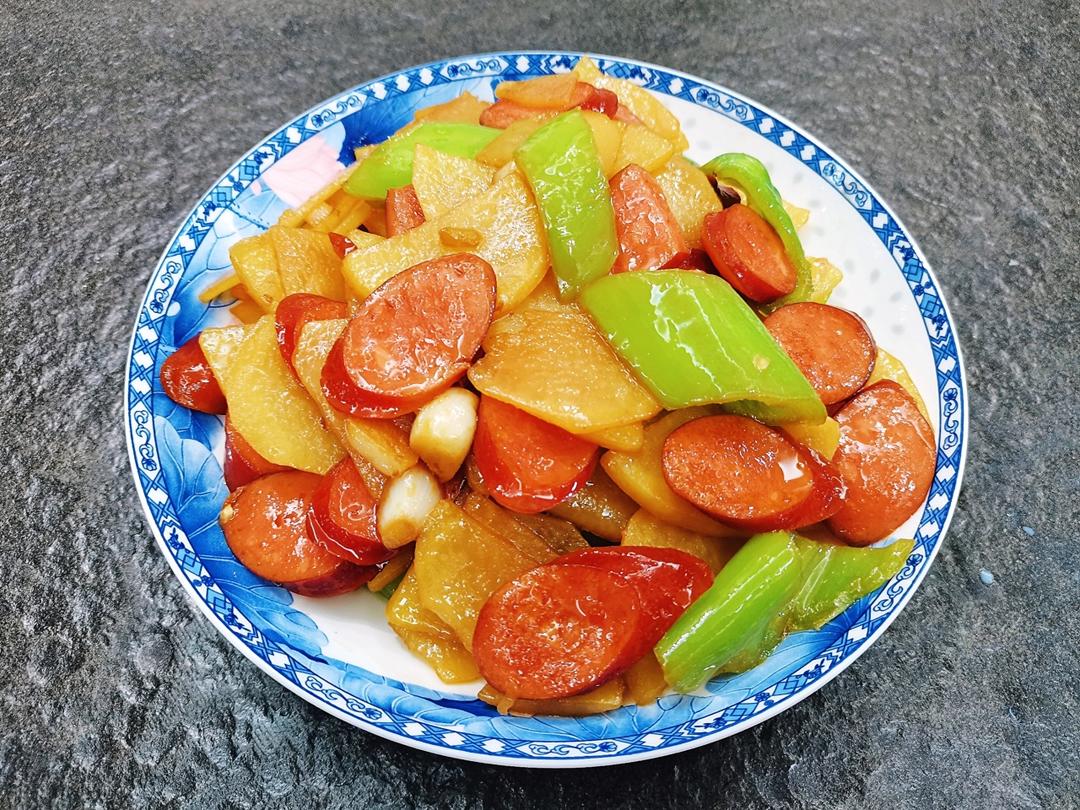 加了肠的青椒土豆片味道更好了