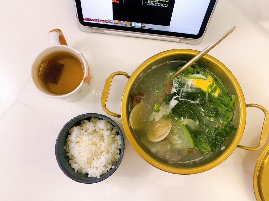 油蛤鸭血蔬菜菌菇汤+米饭