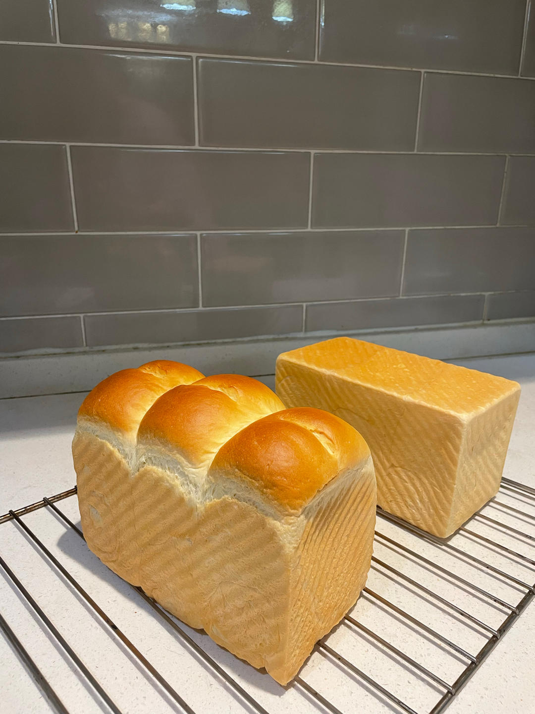 小北极 做过 波兰种奶油吐司 用的日本面粉,原方子基础上要减少点奶油,不然要加多至少50-80克面粉。一个做成了平底,给女儿做三明治用,一个做成山形,同时烤180度下管40分钟,颜色美美的。👩🍳 2022-05-11