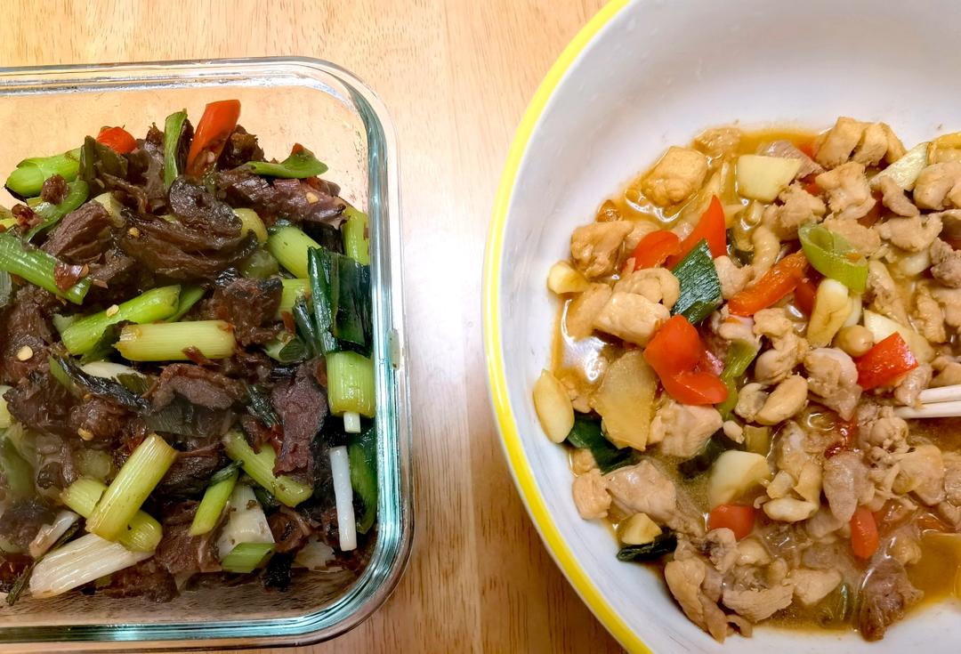 腊牛肉炒大蒜,啤酒鸡腿丁